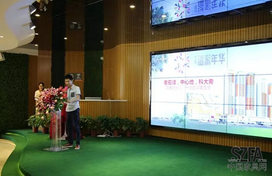 会上,溢彩年华代表沈晓明通过ppt向来宾讲解溢彩年华楼盘项目详情。