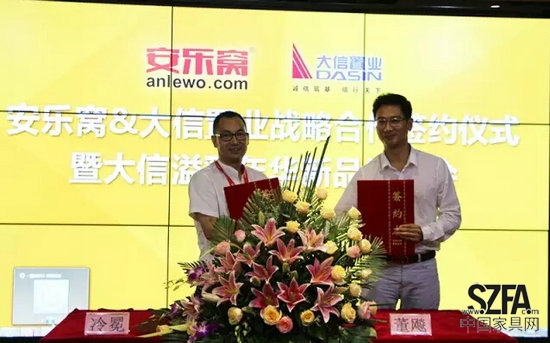 9月22日下午,安乐窝与大信置业战略合作签约仪式暨大信溢彩年华新品发布会在安乐窝线下体验馆隆重举行。会上,安乐窝总经理冷冕与大信置业营销管理中心总经理董飚代表双方正式签署战略合作协议。南方都市报、中山日报、中山商报、中山网、腾讯、网易、新浪、深圳家具等多家媒体及设计师、业主共同出席见证。