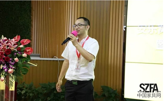 冷冕为到场嘉宾介绍安乐窝398元/㎡主材包,并通过举例说明电商如何实现主材F2C(工厂直接到消费者),并做到让消费者省钱省心的装修。