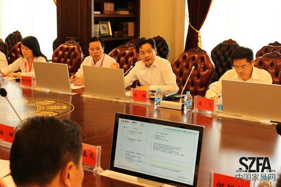 图为:上海家协会长、亚振家具高伟董事长在发言