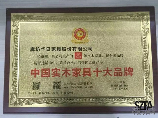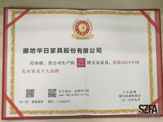 2015年中国实木家具十大品牌评选投票已落下帷幕,这是一个喜庆的时刻,华日家居喜获2015中国实木家具十大品牌荣誉称号。这是一个感激的时刻,感谢所有信任华日的每位客户,是您的信任和支持让我们取得佳绩。