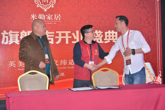 在这次米勒家居苏州旗舰店开业盛典中,其轻奢主义家具深受家具经销商的欢迎和认可,现场的签约活动热烈受到经销商的一而再的追捧签约场面,必将为米勒家居2016年的销售开创良好的局面。