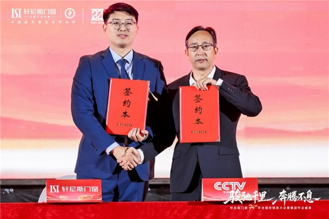 盛典的高潮出现在一场意义深远的签约仪式,轩尼斯门窗集团副总裁曾繁汇与中央广播电视总台签约代表丁庸先生签署战略合作协议。这不仅标志着轩尼斯品牌获得国家级权威平台的高度认可,更意味着其品牌建设进入一个以央视背书为强援的新阶段。中央广播电视总台作为国家主流舆论阵地,此次合作既是对轩尼斯产品实力与品牌公信力的肯定,也是双方关系从单次曝光向系统化、深度化升级的关键一步。