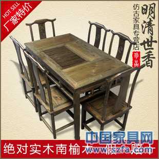 功夫茶桌实木 家具 实木茶桌 榆木茶台 餐桌椅组合