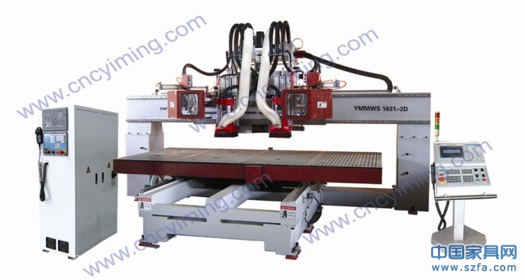 3、两个机头可以随时切换,如第一机头在雕刻镂铣复杂图形时,可以随时切换第二机头来完成其余的工作,大大节省了换刀时间,提高了机械加工的随机性。