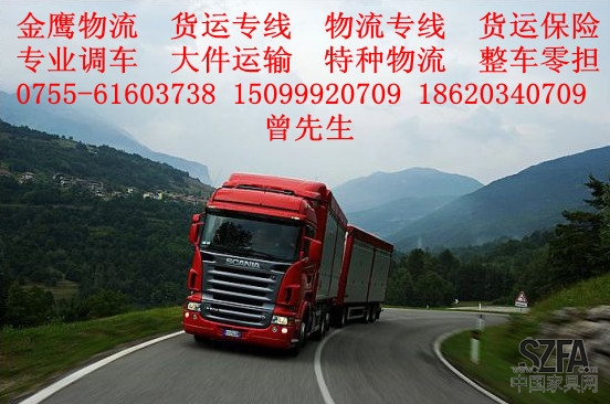 金鹰物流货运【深圳坑梓公明观澜沙井坂田到临江物流货运专线】0755-61603738==15099920709 曾先生 小轿车托运、红酒白酒、搬家搬厂、挖机压路机、印刷品、家私家电、长途搬家钢琴托运服务、天天发车,安全快捷、货物保险《深圳市金鹰物流服务有限公司》成立于1996年,专业经营临江各大城市的公路货运专线、铁路、航空、深港快递、长短途货物零提整车配载,往返联合运输业务。我们秉承“公正敬业”“诚实奉献”的精神,以丰富的运输经验,结合各个物流公司之精华,让您稳坐家中收发临江货。我部拥有各种型号的车辆近百台,有20吨柜、40吨柜、9.6米单桥车、10.5米双桥车、13.5米半挂车、17.5米平板车,及各种型号的厢式货柜车,可满面足各类客户的运输要求,为客户提供全方位多远化物流服务。多年来公司 “以良好的信誉,优货的服务,合理的价格” 赢得广大客户的好评。并具有一级运输代理资格,被深圳市运输局、工商税务分局评为规范经营合格单位。
