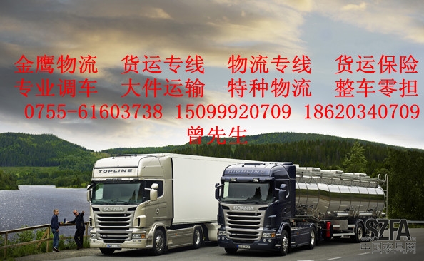 深圳市☆金鹰★物流有限公司是经深圳市交通运输管理局审批的特许经营公路的专线物流公司,公司自成立以来始终坚持规范化管理,人性化服务的宗旨,以诚信、务实、稳健的经营作风,时刻履行自己的承诺,从而为扩大发展企业规模奠定了坚实的基础,通过我们不断努力已建立起完整的管理机构和服务体系,并以“优质、安全、高效”的服务使公司迅速被社会各界广泛认可,历经十几年风雨,现已奋斗发展成为一家拥有数辆10T、8T、5T、12m、10m、9.6m、7.2m大型运输车和市内小型提货车的现代物流企业,金鹰物流有限公司是深圳专业的空车回程配货中心,有5-17米长各样货柜车,价格全市最优。我公司经市运输局批准许可,经工商税务注册,具有独立法人资格。注册资金为200万,各种证照齐全(可随时查看原件),并且代办保险,如果货物量大可商谈月结事宜。