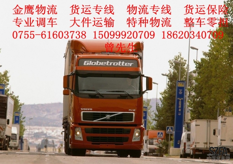深圳金鹰物流有限公司是经深圳市工商行政管理局、深圳市国家税务局、深圳市交通局联合批准成立的,具有独立法人资格的综合性运输企业。业务范围包括:道路集装箱运输、道路普通货物运输、国内货运代理、国际货运代理、海运代理、仓储、配送、快递、搬家迁厂、大型设备吊装、特殊车辆运输。