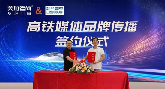 7月5日,美加德尚门窗与高铁广告媒体公司签订合作协议,美加德尚门窗总经理戚冰锋先生与高铁广告媒体公司高昭庆先生共同见证“美加德尚门窗”高铁品牌全方位霸屏仪式的激动时刻。
