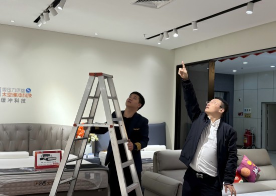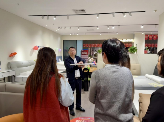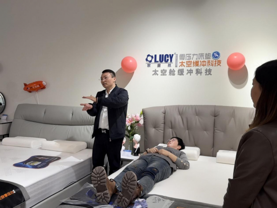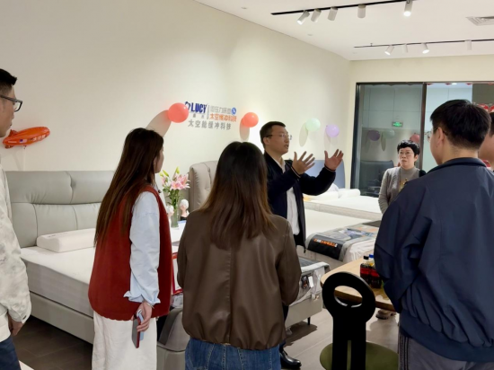 郭木龍总裁带领商学院部分老师来到汕头香江欧露丝太空零压力床垫品牌专卖店做开业指导店面布局,培训专业产品知识,实战演练助力经销商提高终端销售。