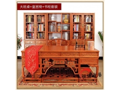 实木写字台大班台大班桌中式雕花书桌榆木