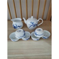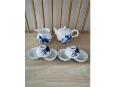 景德镇陶瓷茶具有坯质致密透明,上釉、成陶火度高,无吸水性,音清而韵长等特点。因色泽洁白,能反映出茶汤色泽,传热、保温性能适中,加之色彩缤纷,造型各异,堪称饮 茶器皿中之珍品 这种白釉茶具,适合冲泡各类茶叶。加之白瓷茶具造型精巧,装饰典雅,其外壁多绘有山川河流,四季花草,飞禽走兽,人物故事,或缀以名人书法,又颇具艺术欣赏价值,所以,使用最为普遍。