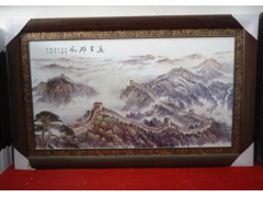 二、瓷板画便于表现中国画的神韵和意味,符合中国人传统的审美习惯和审美趣味,其构图、线条、色彩、意境,均吸收了传统国画的画风,又烙上现代山水画的印记。